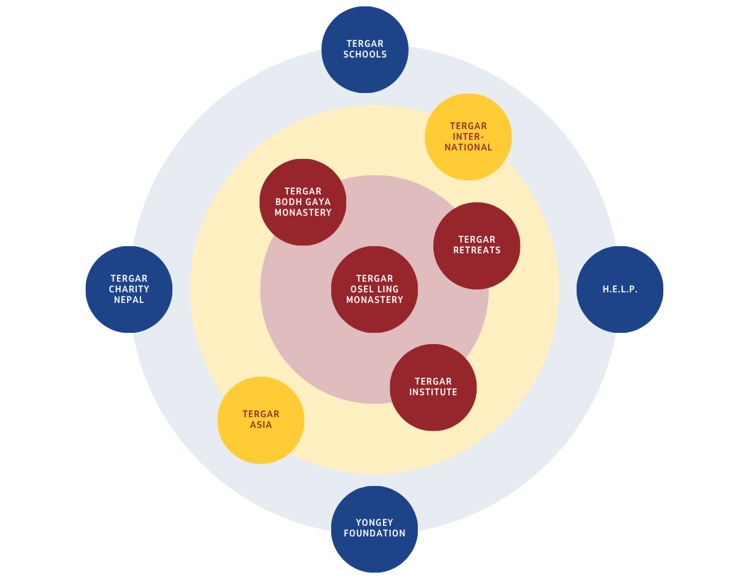 Each non-profit organization within the Tergar Mandala is deeply committed to the teachings and guiding principles of Yongey Mingyur Rinpoche, embodying the practices of the Tergar lineage through a shared spiritual path of practice and study and building a better world of kindness and compassion that benefits all beings.